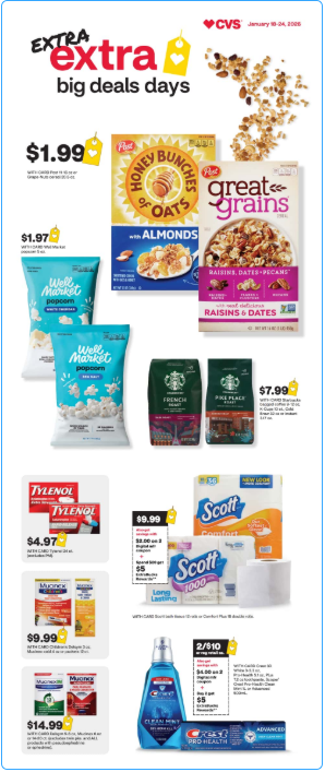 The CVS ad for 18-24jan,2026 is filled with deals you can’t miss! Take a look at the savings and the awesome sales on everyday items— toiletries, toothpaste, vitamins and snacks, we have it all! There are buy-one-get-one-free offers, digital coupons and ExtraCare rewards to help you save additional cents at checkout.
